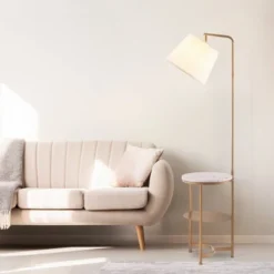 64″ Taelyn Contemporary Floor Lamp With Table And Built-In USB Copper/White Marble – Teamson Home