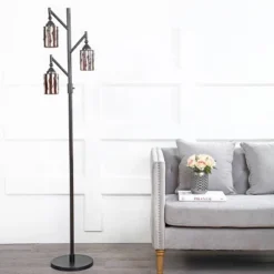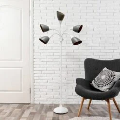 67″ Contemporary Multi 5-Head Adjustable Gooseneck Floor Lamp With Shades Gray – Simple Designs