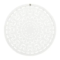 Wood Floral Handmade Intricately Carved Wall Decor With Mandala Design White – Olivia & May