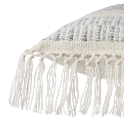 The Liri pillow collection melds contemporary, casual style with geometric global motifs for a fresh accent in both indoor and outdoor spaces. Crafted of durable polyester, the Haskell lumbar pillow boasts bohemian touches of tasseled trim and woven texture for the perfect dose of worldly appeal. This tonal gray pillow showcases a triangle motif for a balance of pattern and versatility.