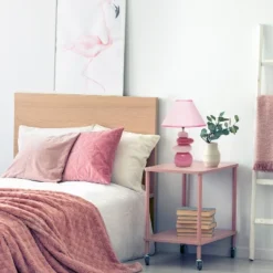 - Includes 1 x empire shaped fabric shade in light pink with dark pink trim
