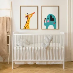 This adorable baby elephant adds a mid-century modern element to your home nursery with its colorful, happy design. Framed in the USA in Waunakee, Wisconsin, this floating canvas art will be a pleasure to look at every day in your living room, bedroom, nursery, or any room in the home. Printed on gallery-wrapped canvas and framed with a lightweight polystyrene frame, this wall art has two hangers already attached to the MDF back for easy wall display. The outer dimensions are 24 inches tall by 18 inches wide by 1.63 inches deep. Print Name: “Mid Century Modern Baby Elephant”