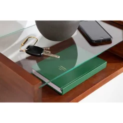 - MULTIFUNCTIONAL: Underneath the glass shelf top you’ll find a shelf that has 4.25 inches of vertical space making it the perfect storage spot for keys, wallets, and other household necessities