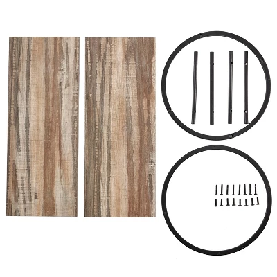 Make a design statement with the Antigua Crossed Double Circle Shelf Unit. Simple and understated, this shelf unit features an industrial style with two levels of distressed wood finish laminate shelves held together by circular black metal frames. An effortless addition to all modern spaces, thanks to its sophisticated, pared-down design. Mount it in your living room or bedroom to store or display picture frames, books, vases, keepsakes, and collectibles; or use it to update your kitchen or bathroom décor while storing kitchen or bathroom supplies.