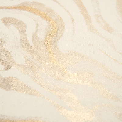The colors of this Rizzy Home Neutral Ivory and Metallic Gold Square Abstract Throw Pillow swirl and dance together to create a pleasant, marbled effect. This pillow will complement your transitional style home décor when used on a chair, sofa, or bed. This piece is large and inviting on its own, or combined in a pillow collection. This pillow is made with cotton completed by a knife edge.