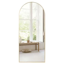 This full-length accent mirror from The Pop Maison reflects classic style in your living room, bedroom, or dressing room. It’s made of shatterproof glass and metal, with a sleek, arched frame. It features both mounting hardware or a removable easel back, so you can hang it on a wall with ease, lean it against any vertical surface, or display it in a freestanding style. This mirror makes any room seem bigger and fills any space with reflected light, and its simple design complements many styles.