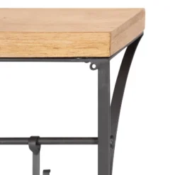 This modern storage shelf is the perfect way to showcase your style with a functional element. Putting a modern twist on farmhouse functionality, the Ozias shelf features a sleek, minimal design with a solid wood shelf and four functional iron hooks. The two-tone rustic brown and black finish brings a comforting coziness to your space while blending into a variety of decorative themes in your home. This modern farmhouse shelf’s overall dimensions are 24 inches wide by 7 inches deep by 9 inches tall, making it a fantastic storage element to keep by your entryway, in your bathroom, in the bedroom, or in your kitchen. The hooks each have a 3 lb. weight capacity, so they’re perfect for your light jackets, aprons, robes, pet leashes and more! The 7-inch shelf depth is robust and ready for 10 lbs. of items, making it a fabulous surface for showcasing your favorite family photos, prized keepsakes, or holding household items. Hang this beautiful shelf in only a matter of minutes with the metal eyelet hangers attached to the back of the frame.