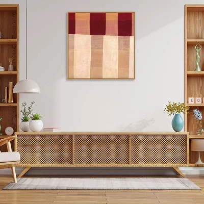 ART DESCRIPTION: This fresh new take on the traditional stripe pattern will add interest and color to any space. Horizontal stripes in shades of maroon, red, and taupe appear to shift before your eyes in this stunning abstract painting. This Amanti Art canvas art print was created by Laura Nugent and printed by Amanti Art in Madison WI. The canvas is stretched by hand and finished with a float frame. Individually made using traditional custom framing techniques, it has the quality you would expect from your local frame shop. Because of our attention to detail and focus on artistry, architects, interior designers, and homeowners alike choose this framed canvas artwork to create beautiful living spaces.