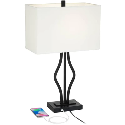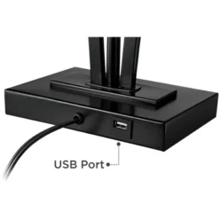 Modern design features modern convenience in this set of two metal table lamps. With a built-in USB port on the base of each stylish lamp, convenience is the name of the game. A gently contoured silhouette with a lovely dark finish stands out to capture attention. This set of lamps from 360 Lighting makes itself at home in a casual living space or home office.
