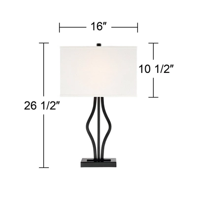 - Set of 2 USB lamps. Each is 26 1/2″ high overall. Rectangular shade is 16″ wide x 8″ deep x 10 1/2″ high.