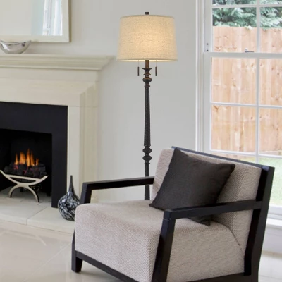 Cal Lighting makes this Traditional resin floor lamp. This Rustic Iron finish lamp has a heavy weighted base and hardback Burlap shade. This lamp uses two 60 watt bulbs (bulbs are not included.) Imagine how this floor lamp will look great in your dining room, living room, bedroom, kitchen, family room, or office.