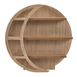 This wooden rustic brown moon wall shelf is versatile and complements a range of home decor styles. Moon and zodiac enthusiasts will find this display stand fits in with celestial, gothic, or witchy home decor. It features 3 shelves perfect for displaying makeup, small trinkets, gemstones, jewelry, rocks, crystals, and essential oils. This self-standing moon shaped shelf measures 12 x 12 x 3 inches tall, ideal for bookshelves and tables or mounted on a wall. Place the crescent moon phase shelf in a nursery, living room, bedroom, or kids’ playroom. It also makes a great Halloween centerpiece and party decoration. NOTE: Hardware not included for hanging on the wall.