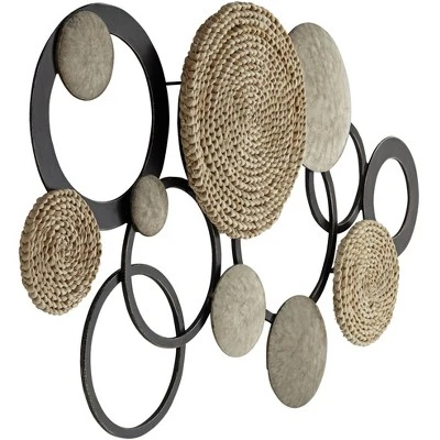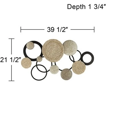 Whether your style is contemporary or coastal, this modern disc wall art piece is sure to elevate your space. From Dahlia Studios, the piece boasts a varied selection of open and solid discs in a range of textures and colors. A black and natural finish is emphasized with silver touches for an elegant final accent.