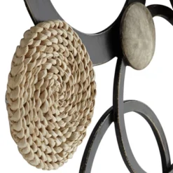 - Black, silver, and natural jute rope finish. Metal and natural material frame construction.