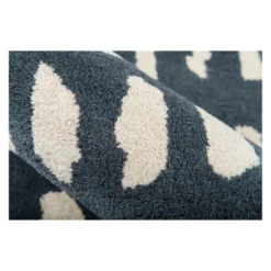 The graphic design of this modern area rug adds contemporary flair to floors throughout the home. Captured in a spectrum of vivid shades, polka dots, chevron stripes, triangulated patterns and checkerboard prints are perfect for layering above carpet or hard surfaces. Hand tufted from natural wool fibers, this decorative area rug assortment emanates fun with its oversized geometric arrangements and vibrant splashes of color.