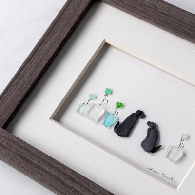 The Puppy Dog Tails Wall Art by Sharon Nowlan depicts two dogs looking at each other, surrounded by slightly colorful flower pots. The Sharon Nowlan collection shares this artist’s evocative beach pebble artwork in wall decor. Celebrates a dizzying array of themes from relationships to sentiments to holidays and just enjoying life. Easel backer and triangle hanger for hanging on the wall or standing. Neutral coloring matches almost any décor and makes a great gift for anyone.