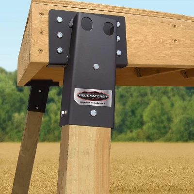 Elevators support brackets are designed for the elements and can withstand high winds and frigid temperatures that others cannot. Each 4×4 inserts 5.75” to ensure maximum safety and sturdiness. Elevators use heavy-duty 12-gauge steel with robotically welded joints, making them strong enough for the next do-it-yourself playhouse, swing set platform, deer blind, or free-standing deck. Elevators are designed with an 8-degree angle that is scientifically proven to be the optimum angle for vertical load and preventing side-to-side sway.