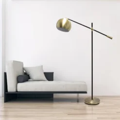 Drawing inspiration from mid-century modern designs, this sleek, arched floor lamp features an 8″ globe shaped shade and slender metal body for a minimalist touch. An antique brass finish brings elegance to any space. Place this lamp next to your work space or reading area for a pop of glamour and style while an adjustable shade offers optimal functionality as well.