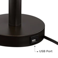 With a thin profile and clean design, this set of table lamps is sure to add both style and function to your decor. From the Franklin Iron Works brand of lighting, each lamp features a rich bronze lamp base finish and drum shades in a textured tan fabric. The look is ideal for rustic farmhouse and modern industrial room decor. Best of all, each lamp has a built in USB port in the base, allowing you to charge phones and other devices and keep them close at hand. Twin pull chains on the lamps give you easy lighting control, so you operate two bulbs independently or together. Add both to the same room to create a designer look.