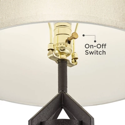 Franklin Iron Works Lucas Industrial Table Lamps Set Of 2 With Round Risers 27 1/2″ Tall Bronze With USB Nightlight LED Oatmeal Drum Shade For Desk