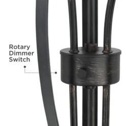 - Uses three maximum 60 watt standard-medium base bulbs (not included). Rotary dimmer switch on center pole.
