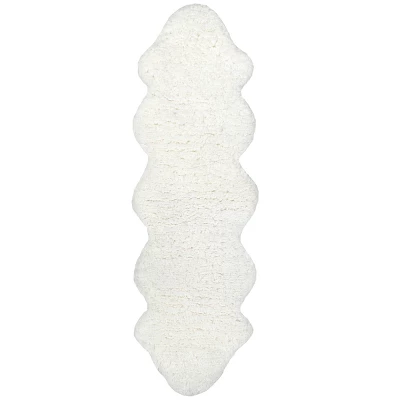 Create a comfortable and inviting atmosphere in any room in your home with this Hand-Tufted Double-Pelt Faux Sheepskin Accent Rug from nuLOOM. This white faux-fur rug comes in either a unique runner shape or a rectangular shape with scalloped edges – its plush medium pile construction makes it incredibly soft underfoot. With 100% wool construction and a bold modern design that creates both style and texture, this medium pile faux-fur rug is the perfect solution to adding a pop of functional decor over any flooring surface in your home.
