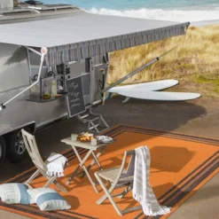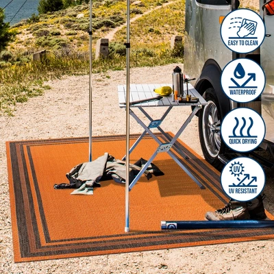Inspired by the clean lines of modern design, our stripe border rug has a durable low pile. This versatile pattern is woven in contrasting colors for a low-key, minimalist look. Add graphic punch to your living room, dining room, bedroom, or porch with this easy-care, family-friendly rug.