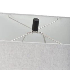 - Lamp Is Composed Of A Light Gray Linen Tapered Rectangle Shaped Shade.