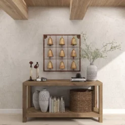 - •This wall plaque features 9 metal bells attached to separate compartments in this square profiled frame