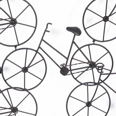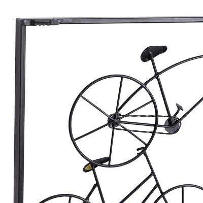 It has a minimalist and artistic style exterior that suits industrial interiors. This item ships in 1 carton. This is a large iron wall décor featuring miniature bicycles. Can be hung vertically using the sawtooths on the back; nails and screws not included. Suitable for indoor use only. This item ships fully assembled in one piece. This is a single black colored wall sculptures. Rustic style.