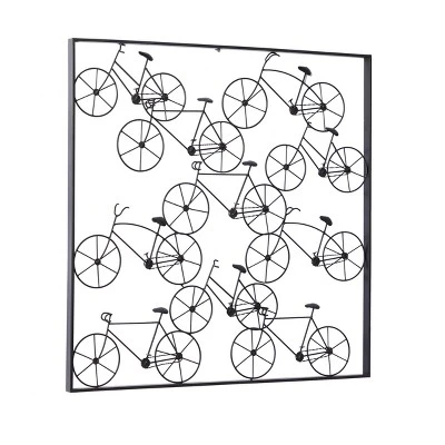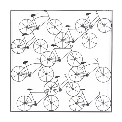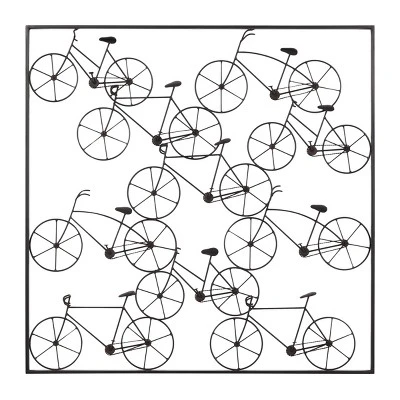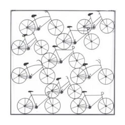 - This rustic-industrial style wall decor showcases 10 bicycles inside a square frame