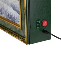 This unique, 3-D snowing wall plaque is a must have this holiday season. Snow continuously cascades over a retro truck, picking up the holiday tree, while the sounds of your favorite holiday carols fill the air. Whether placed on a table or hung on a wall, this piece will take center stage.Features:Snowing and musical truck wall plaque Continuous cascading snowInside is illuminated with LED tape lightsLight color: pure whiteCan be used with or without musicConvenient multi-function power switch on the bottomComes with hanging hardware options8.5′ black lead cord with AC/DC adapter 12 volts, 60 hertz, .06 ampsFor indoor use onlyPlays the following classic holiday songs: Jingle BellsWe Wish You A Merry holidaySilent NightDeck the HallsJoy to the WorldThe First NoelHark! The Herald Angels SingO holiday TreeDimensions: 15″H x 15″W x 3.5″DMaterial(s): plastic/foam/wire