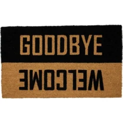 Make a warm and inviting statement to your home with this “welcome/goodbye” doormat, that will also send your guest off in style. With its sturdy construction and non-slip backing, this doormat stays securely in place, even in high traffic areas.The thick and durable coir fibers are perfect for trapping in dirt and moisture from shoes. Whether it’s placed at the front door, back door, or patio entrance, this doormat is a functional and decorative addition to any home.Product Features:Doormat made with coir fibers”Welcome/goodbye” in bold printConstructed for lasting durabilityNon-skid backing provides secure placementFor both indoor or outdoor useCare instructions: rinse with a hose and air dryDimensions: 18″H x 30″W x 0.75″DMaterial(s): coir/PVC