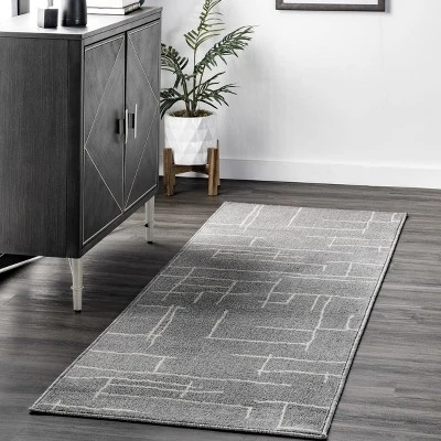 Complement your sleek, contemporary decor with tis lovely Sasha area rug from nuLOOM. This rug features an abstract geometric pattern in neutral grey and ivory hues that complement any space. Made of polypropylene, this stylish rug is durable enough for the busiest areas of the home. A rug pad is recommended to prevent slipping and to keep the rug lying flat in one place.