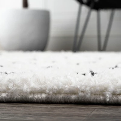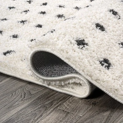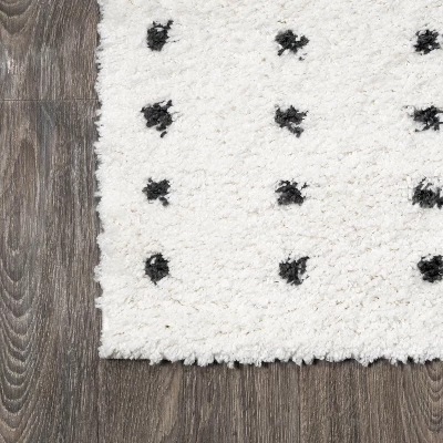 Inspired by mid-century rugs, our geometric dot rug has a soft, low shag pile. The all-over pattern is woven in ivory on a gray background. Add some graphic punch to your living room, bedroom, or reading nook with this easy-care rug.