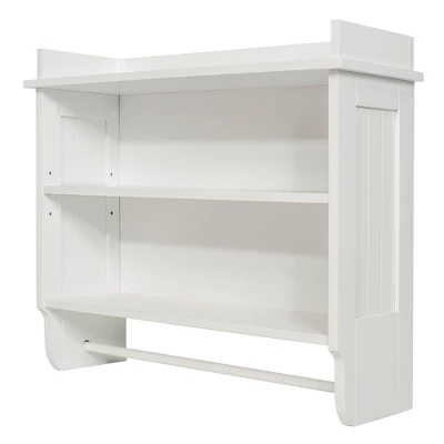Store your items and elevate your bathroom with the Redmon Contemporary Country Floating Wooden Wall Shelf.With a contemporary design, modernizing your bathroom with this high-quality wooden shelf adds style and storage. With 3 shelves and 1 towel bar, display your toiletries and decorative items while air drying your towels. Designed to match any bathroom, the semi-gloss durable enamel finish creates a style that can compliment your space. Utilize the adjustable middle shelf to give your larger belongings more room between the fixed top and bottom shelves.Mount this shelf on the wall or ceiling with simple assembly. By constructing the shelf with the included instructions manual and a Phillips screwdriver (not included), complete your bathroom aesthetic and provide extra space for your belongings. Simply wiping down this shelf with a damp cloth rids the semi-gloss wood of any spills, making maintenance easy.Complete your bathroom look with the Redmon Contemporary Country Floating Wooden Wall Shelf.