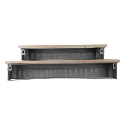 Set Of 2 Distressed Metal And Wood Hanging Wall Shelves – Foreside Home & Garden