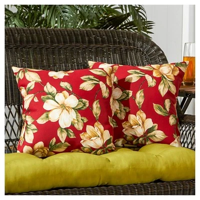 - Set includes two 17 x 17 inch outdoor throw pillows