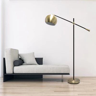 Brighten up your living space with this attractive piece, accented with matte black poles and polished antique brass metal. This minimalist table lamp features curved lines and a stylish metal dome shade. This lamp will help add sophistication to your living room, bedroom, office or library with this sleek and modern table lamp.